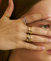 Kasane (重ね) - “To layer.” A quiet accumulation. Each layer, a moment. This trio of sleek gold bands, 1mm, 2mm, and 3mm, embodies the spirit of Japanese minimalism, where simplicity and balance shape timeless expression. Designed to be stacked, mixed, or worn solo, each...- $89