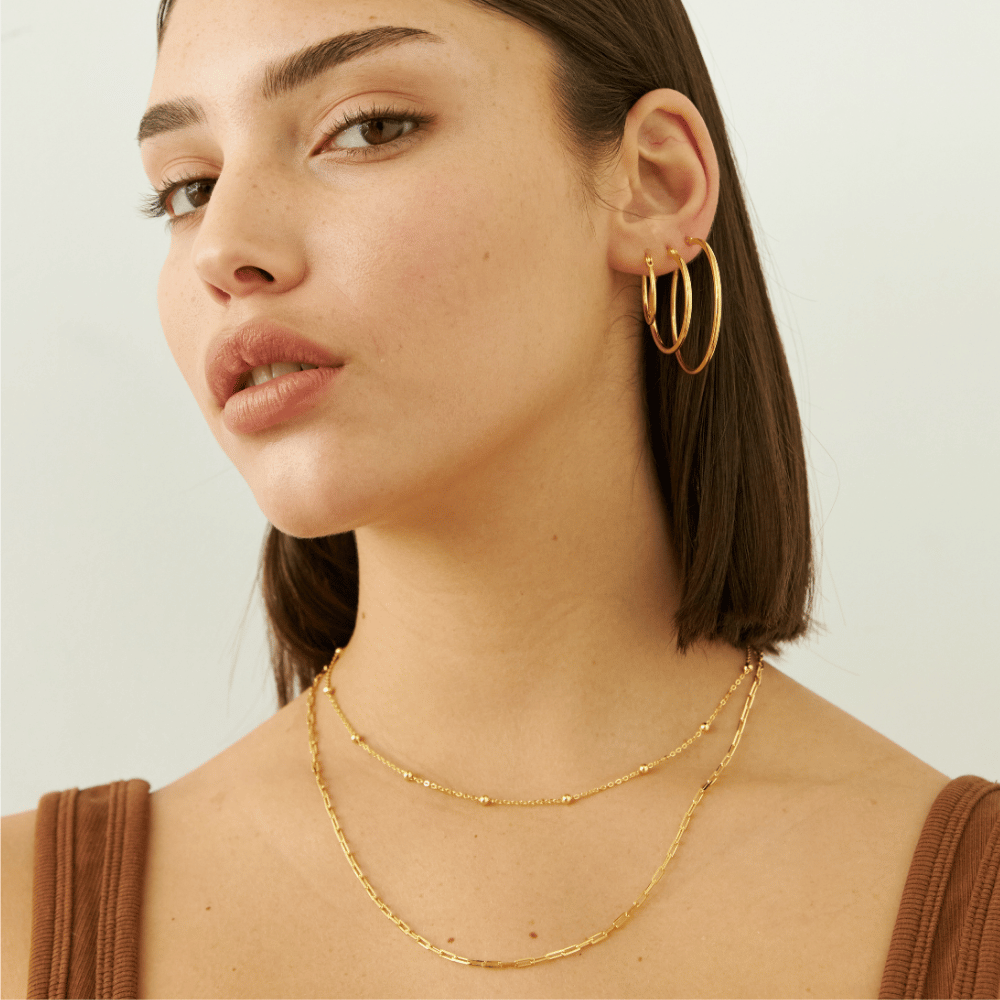 These 30mm hoops embody the quiet elegance of minimal design. Polished and precise, their clean silhouette reflects a refined sense of balance and ease.