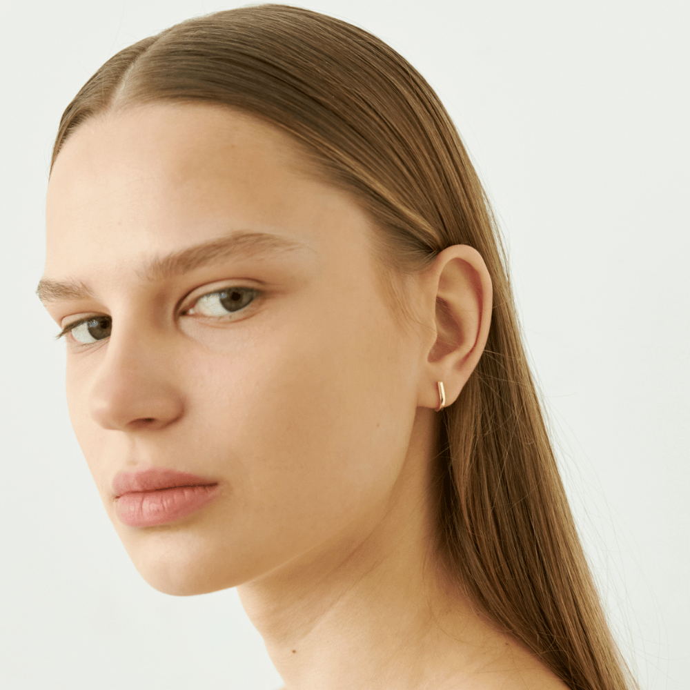 These mini hoops curve with intention, where clean geometry meets soft minimalism. Compact yet confident, their sleek silhouette makes them your effortless everyday companion.