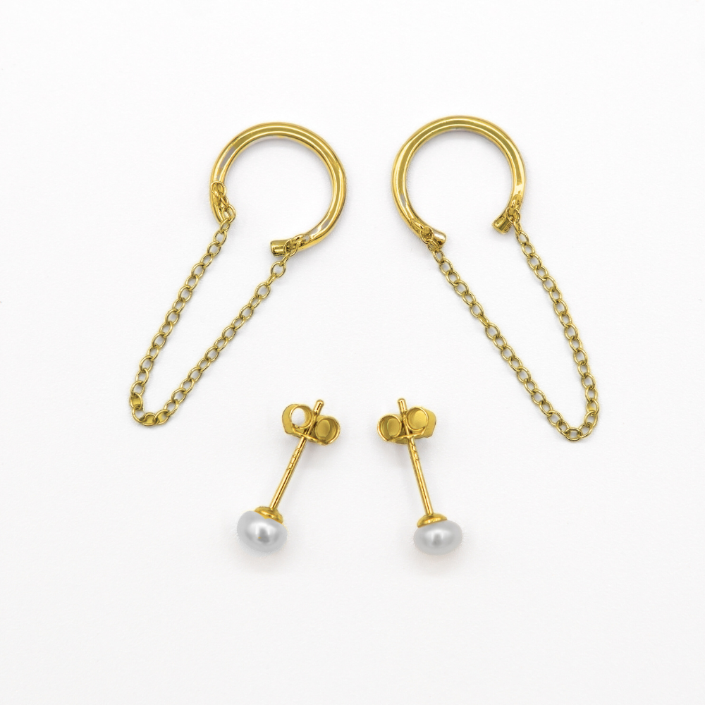 Shizuku Pearl Stud Earrings + Celestial Ear Cuffs