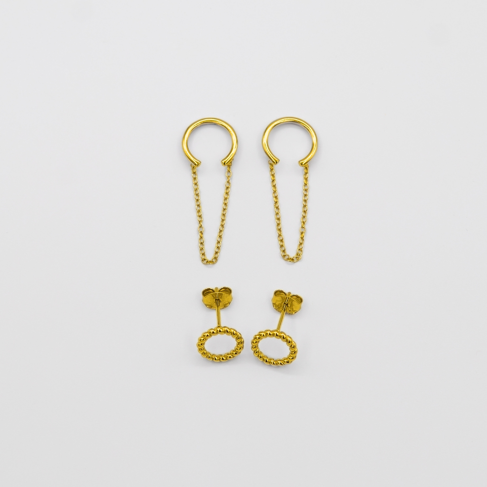 The Ethereal Balance Bundle combines the Minimalist Twisted Circle Studs and the Celestial Ear Cuffs, blending meditative design with modern edge. The twisted circles embody balance and presence, while the cuffs reflect freedom and flow.