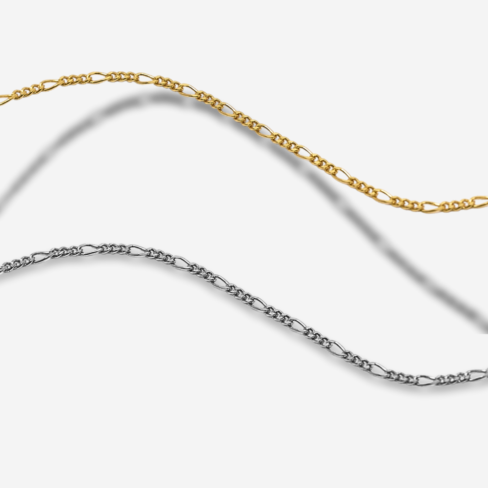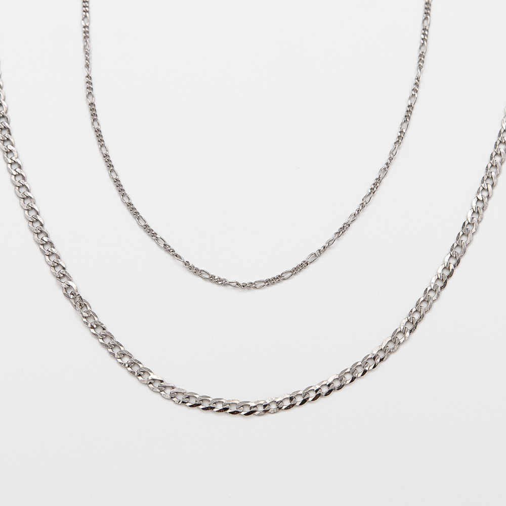 18 in Nagare Curb Chain (3 mm) + 16 in Ritsudō Figaro Chain (1.7 mm)