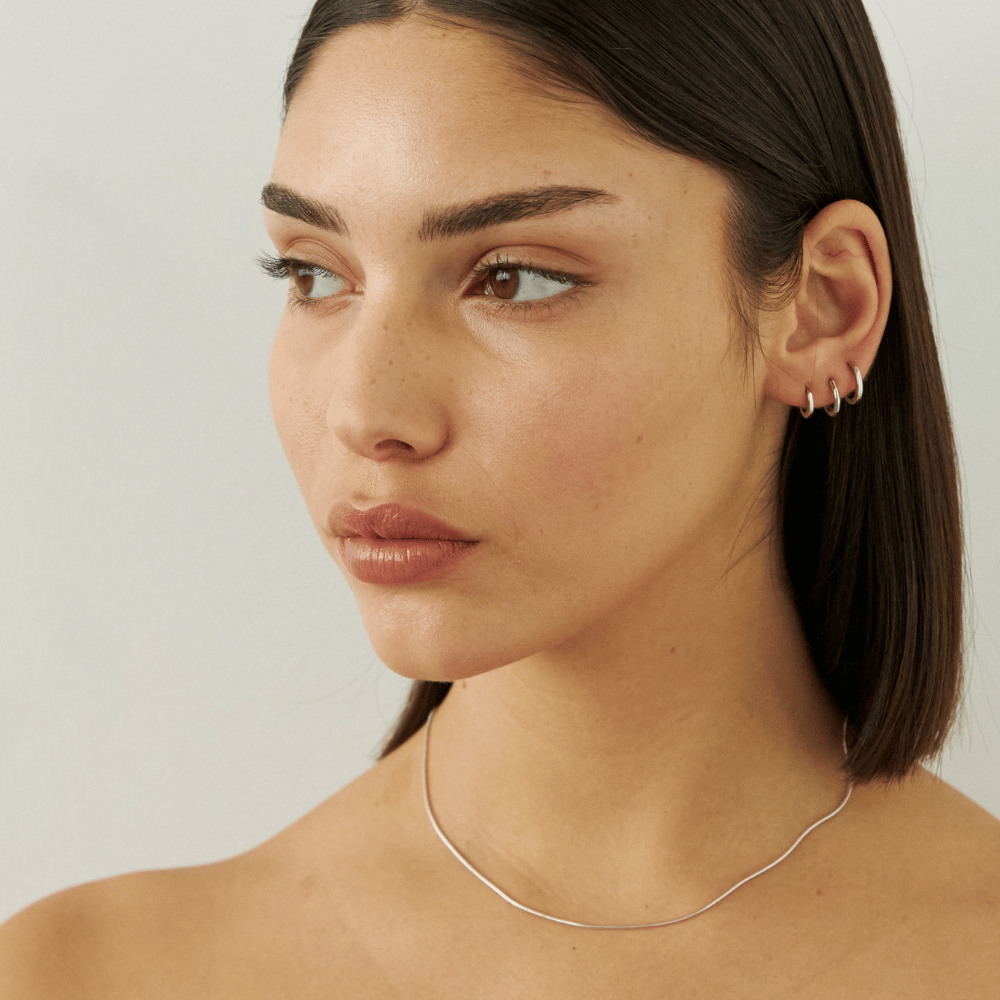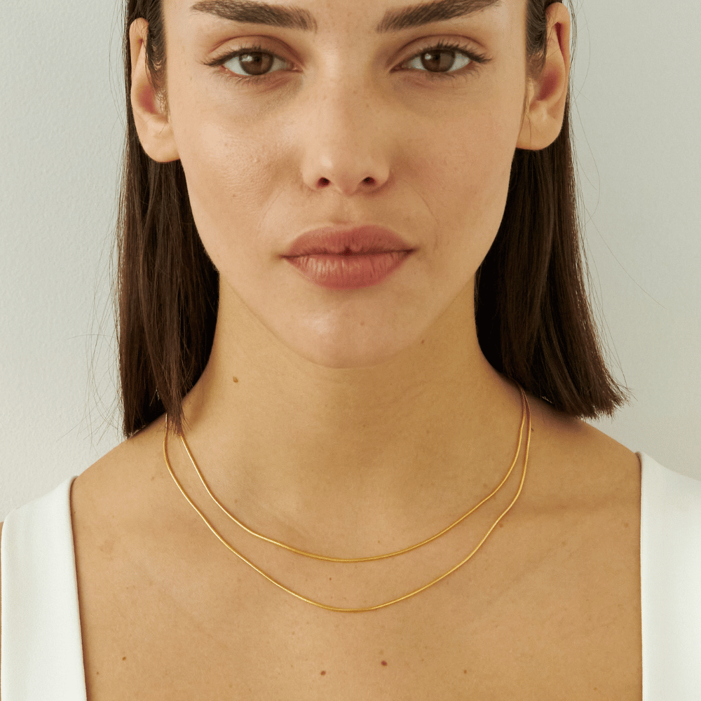 This 1 mm snake chain moves with quiet grace, its fluid, reflective surface echoing the rhythm of water and the essence of change. Smooth to the touch and grounded in simplicity, it embodies the beauty of transformation through stillness.