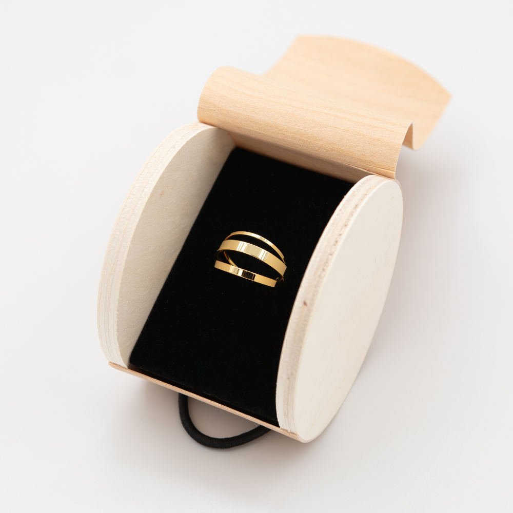 This trio of sleek gold bands, 1mm, 2mm, and 3mm, embodies the spirit of Japanese minimalism, where simplicity and balance shape timeless expression.