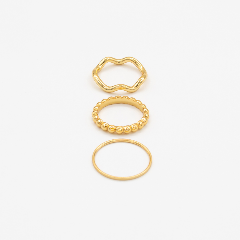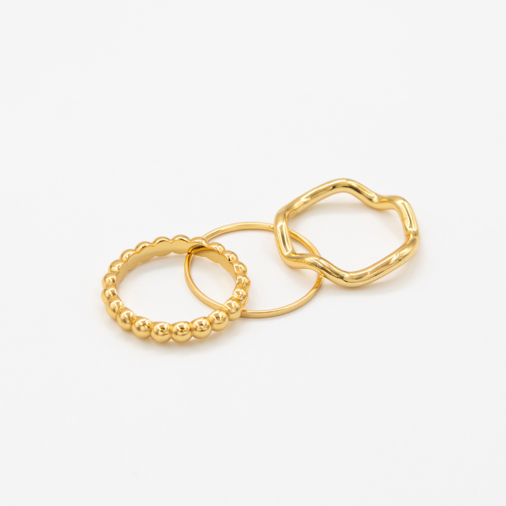 1 mm Kasane Band Gold Ring + Line of Light Gold Ring + Wave Band Gold Ring