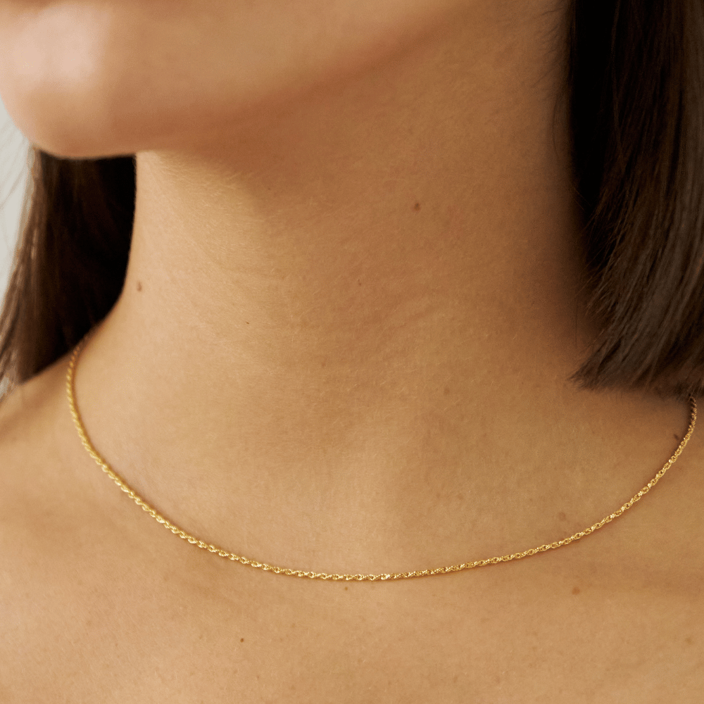 This 1.2 mm rope chain reflects the quiet strength of what binds us. With its intricate, twisted design, it celebrates the beauty of interwoven paths, stronger together, graceful in form.