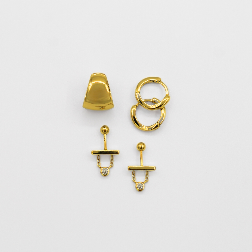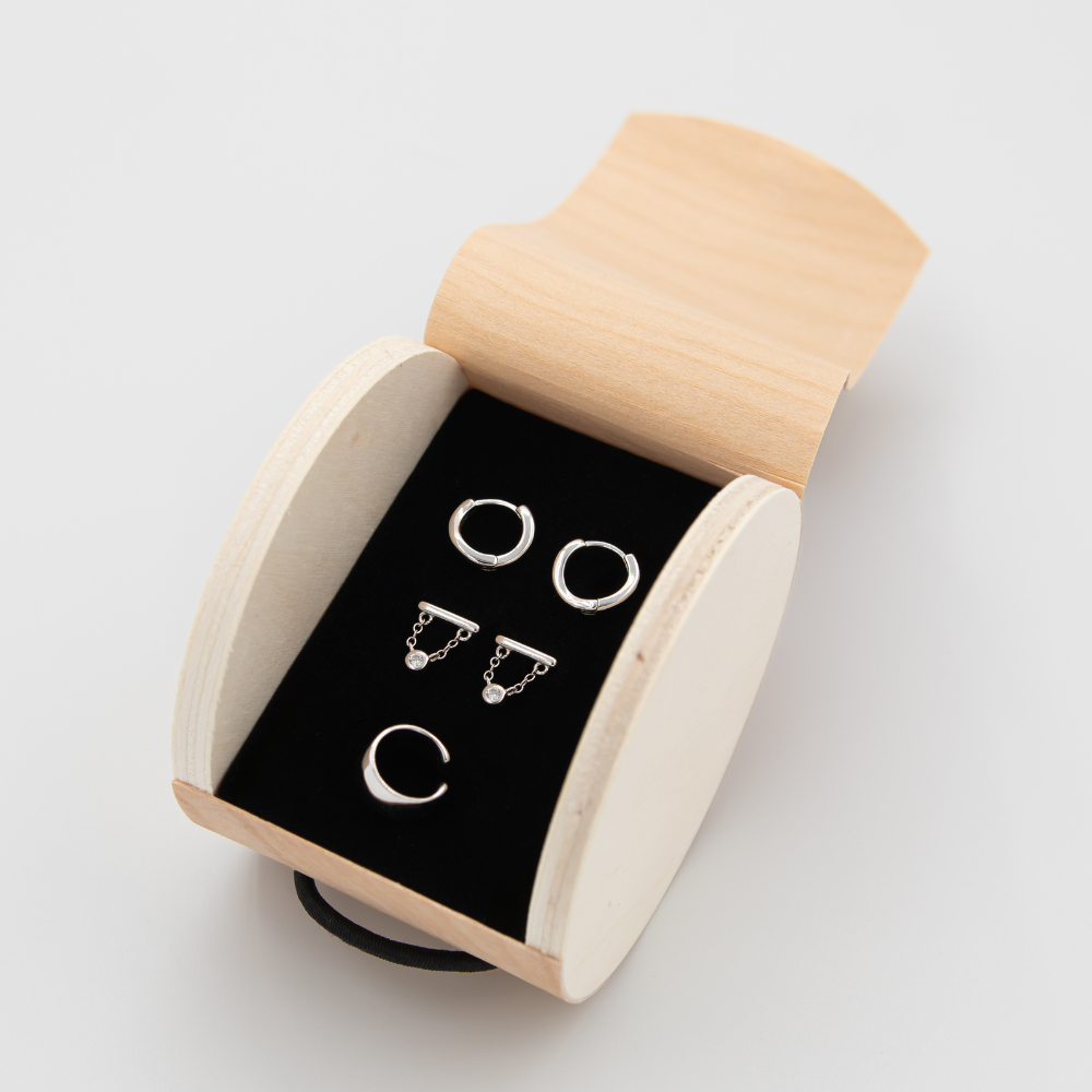 The Rhythm of Form Bundle unites the Mini Wave Hoops, Mitsukari Helix Earrings, and Kodo Cuff Earring, Single into a composition of modern balance. Each piece flows in its own rhythm, the Wave’s softness, the Mitsukari’s direction, the Kodo’s pulse, together forming an elegant trio that moves as one.