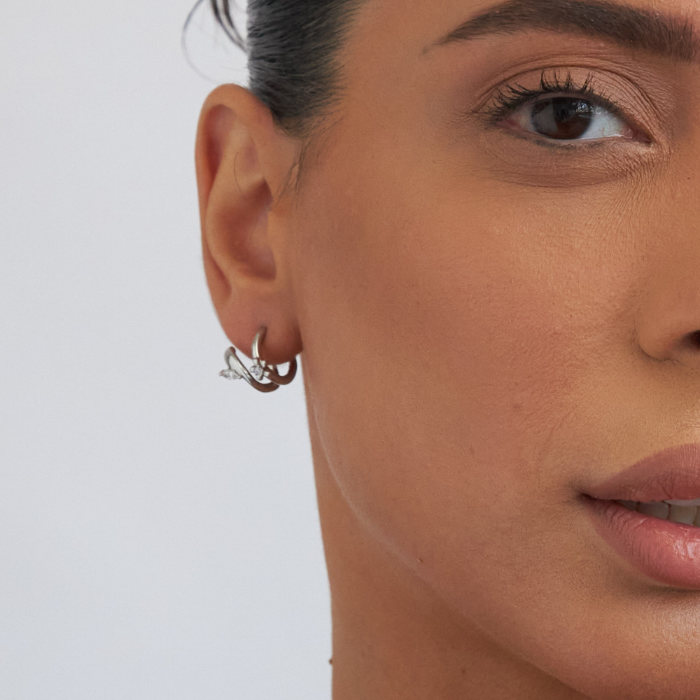 These earrings feature distinct left and right sides for a refined, balanced look.